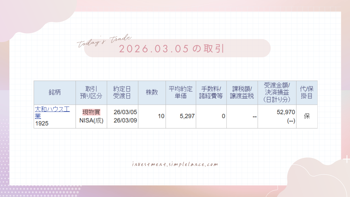 取引 日経リバ!大和ハウス工業を新規ミニ株買い
