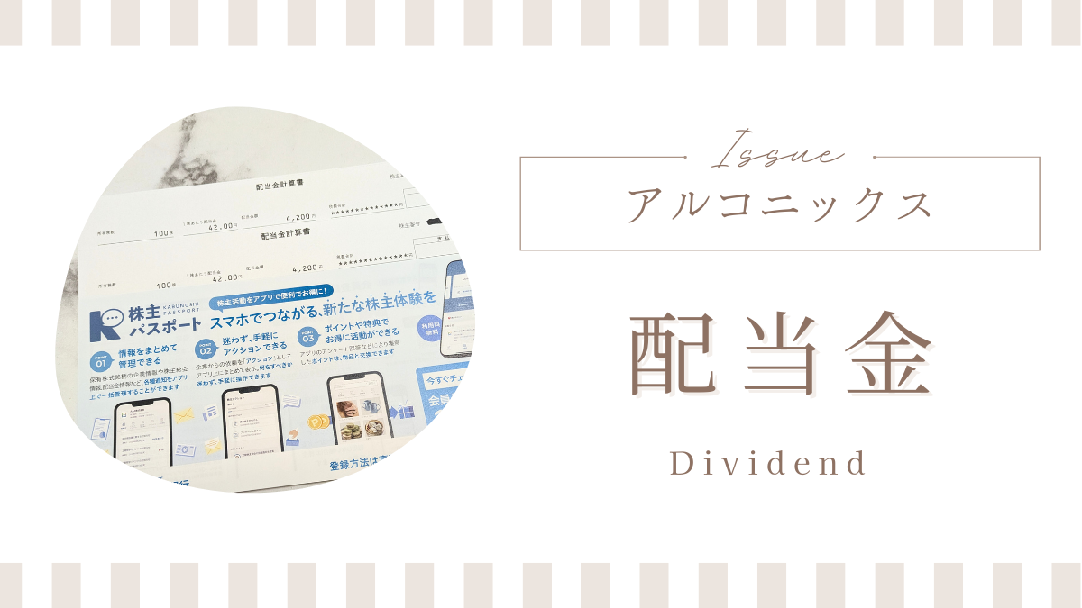 アルコニックスから配当金が入金されていました。9月末権利銘柄で最初の配当金です!息子のジュニアNISA口座と私のNISA口座と、それぞれ100株ずつ2名義分。それぞれ4,200円の配当金ゲットです。アルコニックスは買った時よりかなり株価も上...