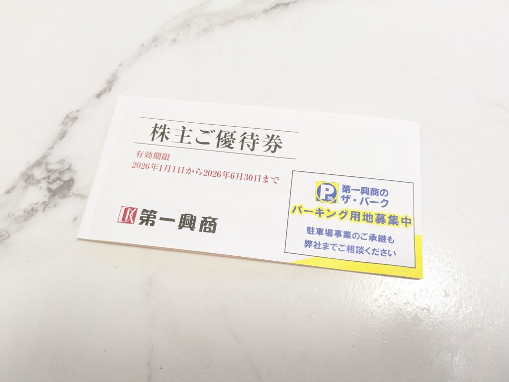 少し前になりますが、今年初取得の「第一興商」の株主優待券が届きました。