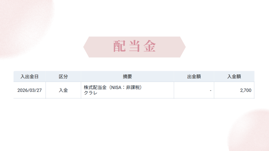 クラレの配当金が入金された