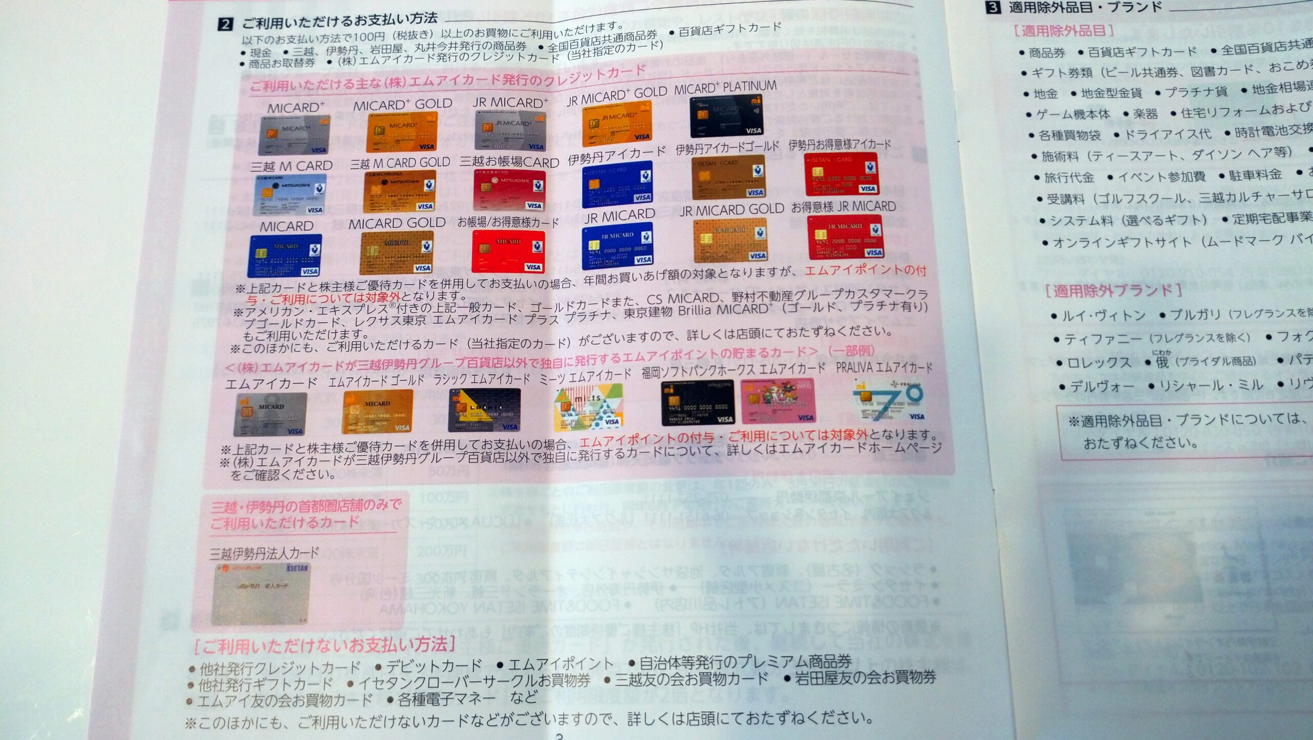 現金派の方は問題ありませんが、クレジットカードはエムアイカードなど三越伊勢丹グループが発行するカードのみの使用になっています。