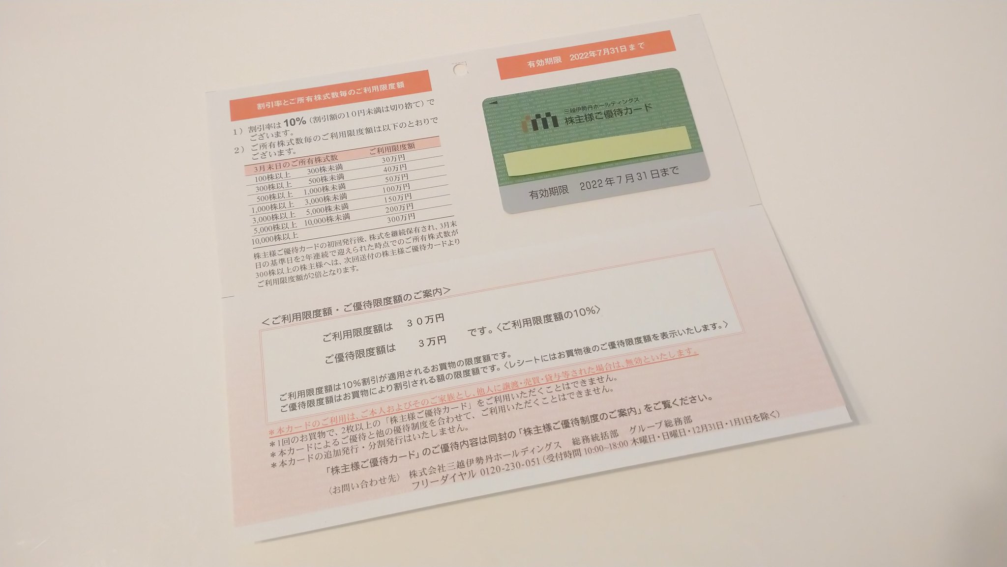 先日、三越伊勢丹ホールディングスから株主優待カードが届きました。