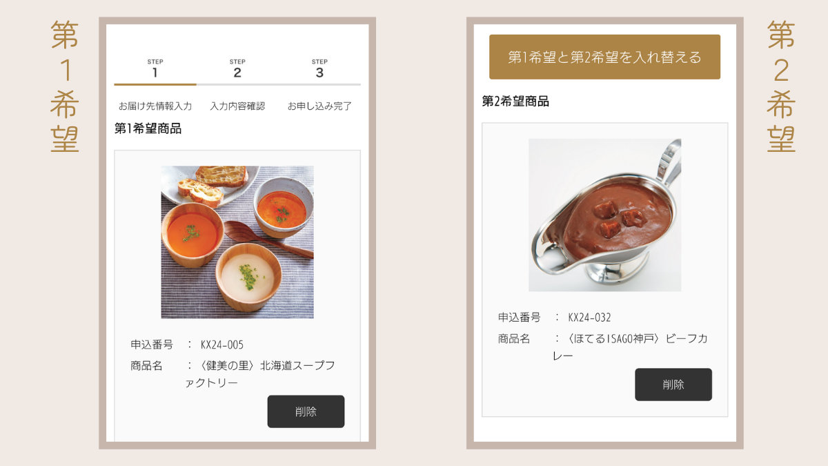 レトルトカレーは3種類もあったので、直観で選びました。まあ普通に第一希望のスープが届きそうな気がするのでここは適当で。