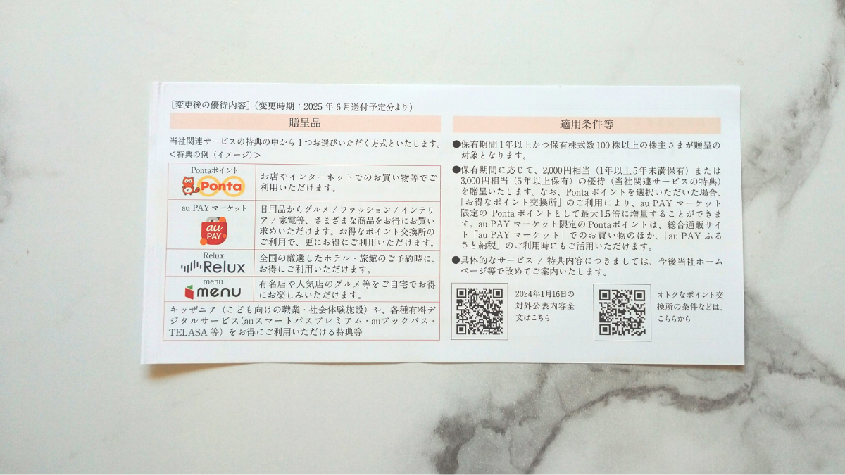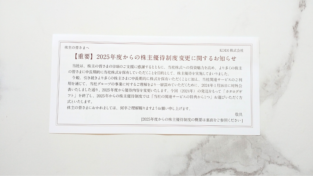 KDDIから株主優待カタログが届きました。初取得にして最後の優待です。