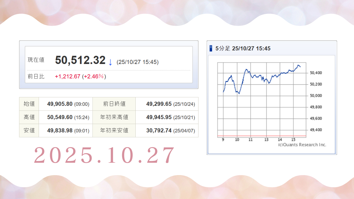 ついに今日、日経平均株価が5万円を突破しましたね!