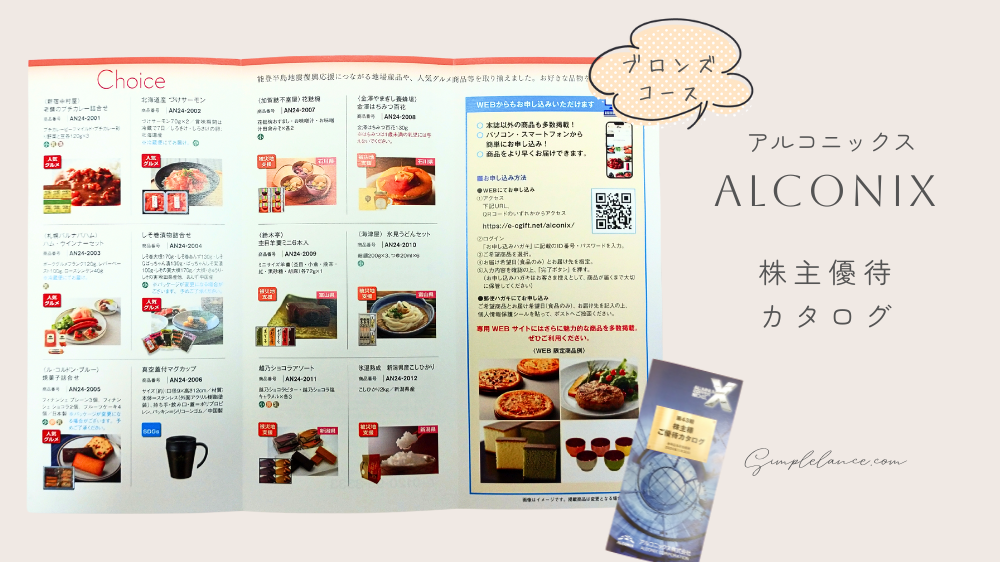 アルコニックスから株主優待のカタログが届きました。優待取得には1年以上の継続保有が必要なため、買った...