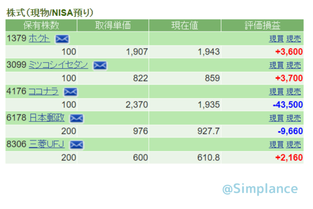 UFJの含み益は結構減ってしまいましたが、ココナラが息を吹き返してきたため、含み損が減少しました。とはいえ、まだまだ絶賛含み損。それでも含み損額は2万円以上減っているので嬉しいです笑。プラ転する日はまだまだ遠そうですが…