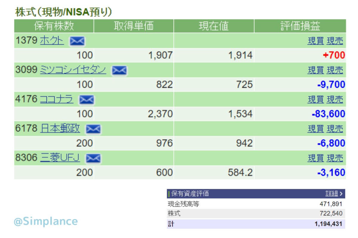 ついに含み損が10万円の大台を突破!ココナラ株が続落に次ぐ続落で、上場来安値を更新。一体いつ底をつくんですかねー。手数料があんなに高いのに謎に赤字ですしね…