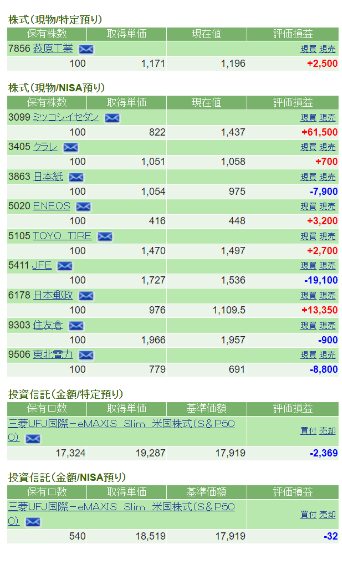 ただ、今年はもっと大きく株価全体が下がると思って多めに余力を残していたのは結果的にはもったいなかったですね。慎重になりすぎてNISA枠も残ってしまいました。