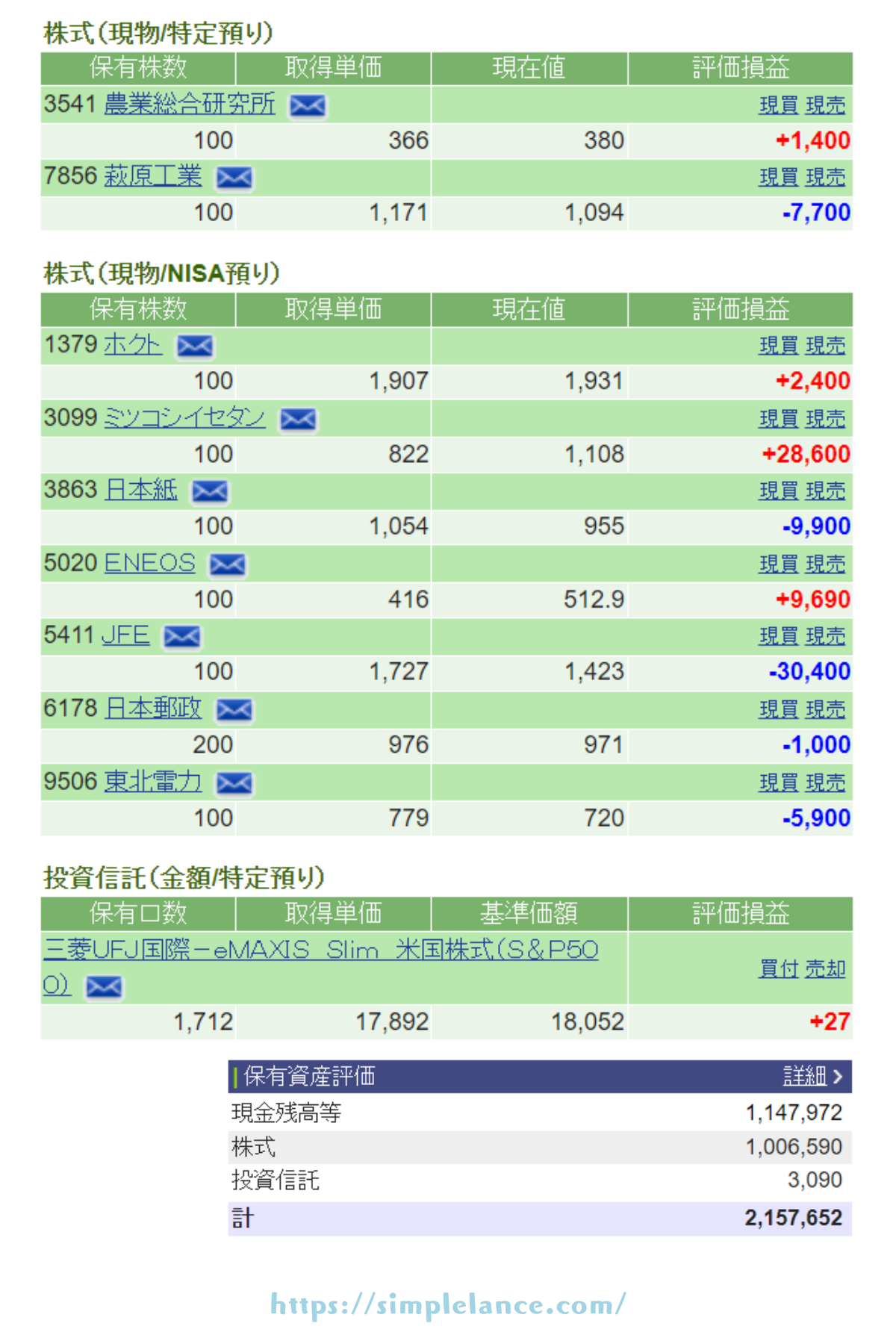 さて、今週はというと、気になっている銘柄が大きく下げたりしていたのですが、まだ高値かなーと思い様子見していました。なので特に何も取引はしていません。
