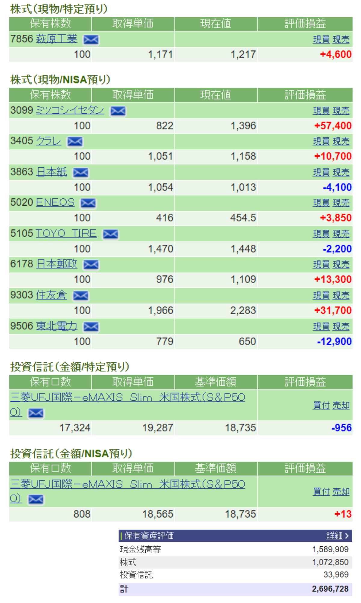 他は自分の中で特に高値掴みしてしまった感はないので、これから市場が悪くなるかもしれませんが、そのまま保有し続けようと思っています。大きく下がるタイミングがあればナンピン・買い増していきたいです。