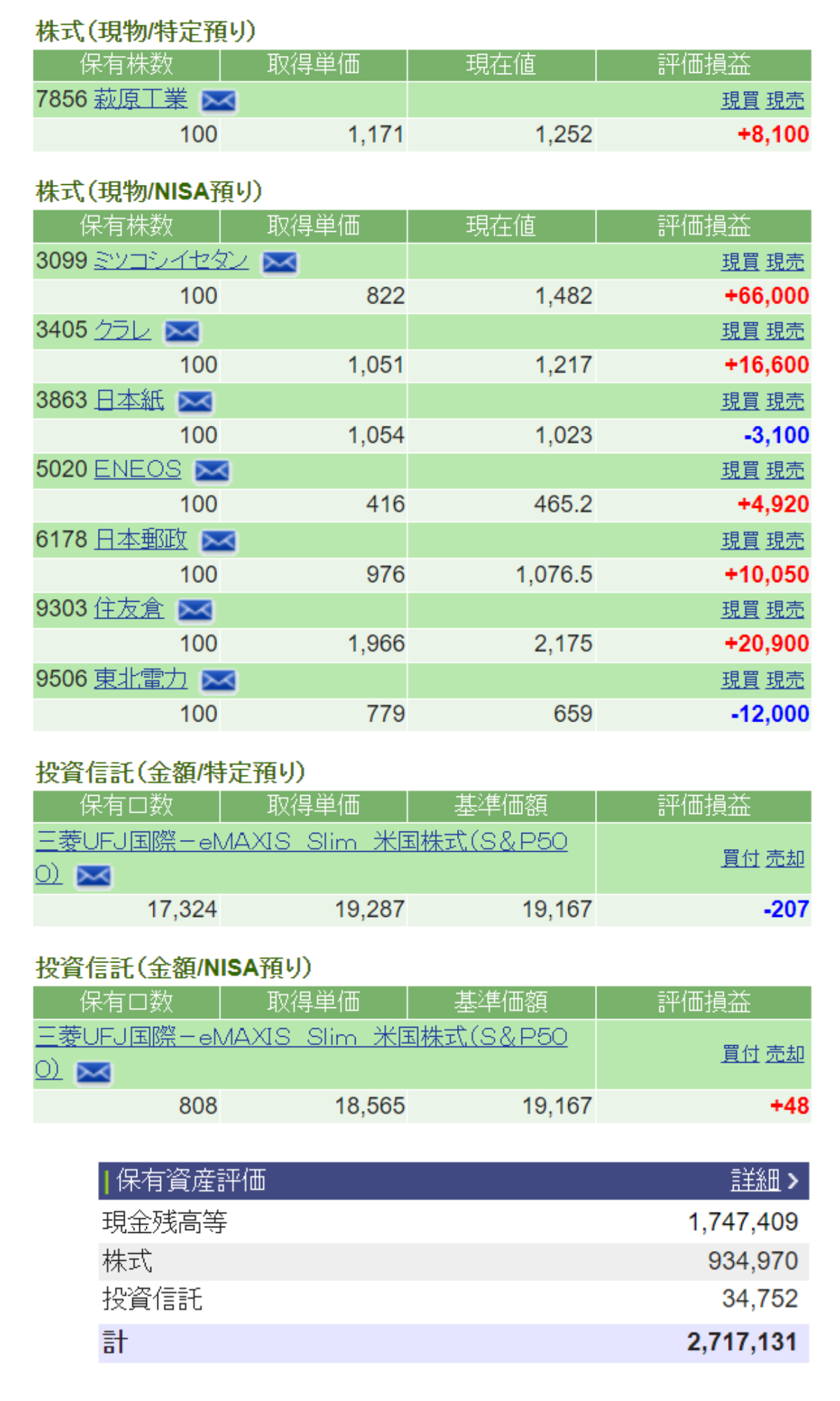 少額ではありますが、完全なる不労所得なので嬉しい限りです。クラレは今も持っていて含み益、トーヨータイヤは先ほど書いたように売却してキャピタルゲインもゲットできているので万々歳です。