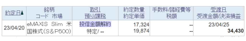 購入時の単価は19,287だったので、数百円ですがプラスで売却できました。