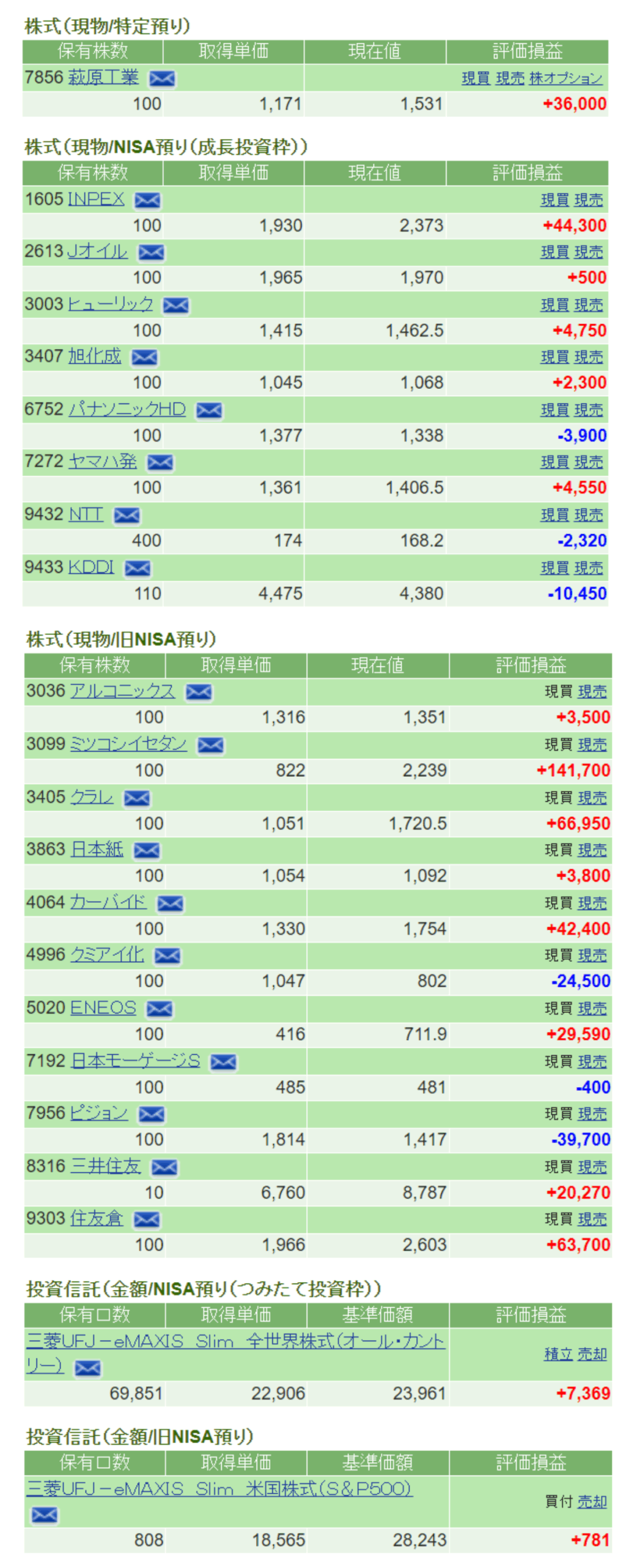 株価が下がってきても、果たして今は買いの時期なのか?という疑問もわいてきますが、「何だかお得な金額に!」と思って新規買いしちゃいました笑。