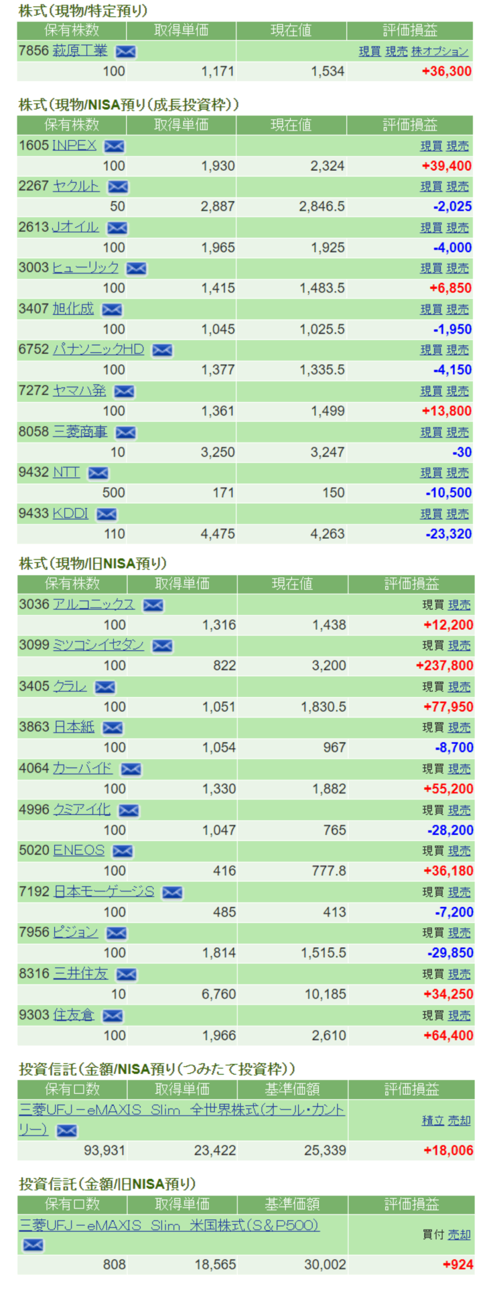 旧NISA銘柄が頑張ってくれているおかげで、全体では含み益ですが、今年買ったのはボロボロです。やっぱりタイミングですよね…