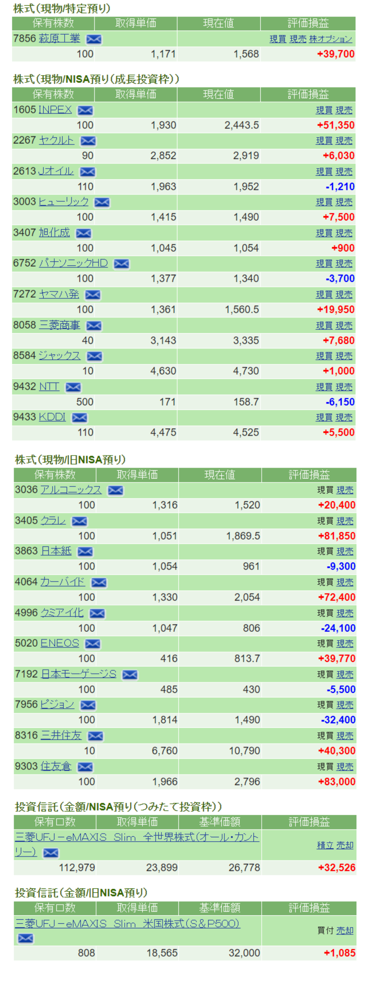 実は、上げの最後の木曜日に1銘柄利確しました。何となくなタイミングで利確したのですが、ナイスタイミングだった気がします。