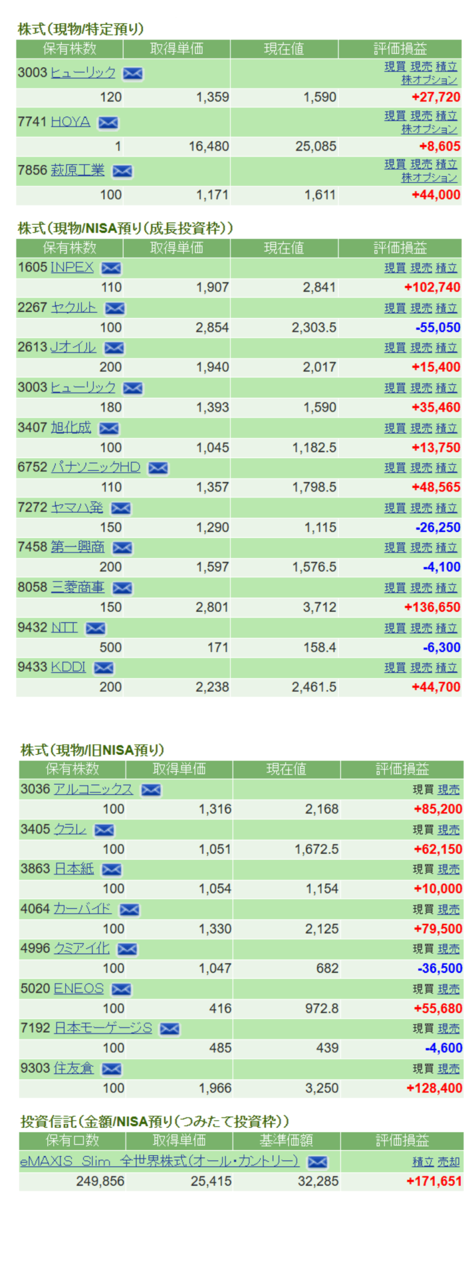ただ、私の持ち株はそこまで株高の恩恵は受けていないもようです…