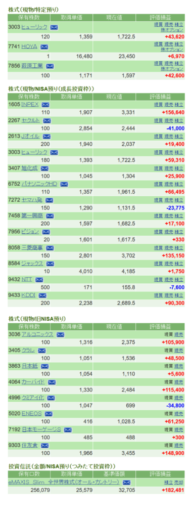 今週は特に取引はしていないので、ポートフォリオは変わらずです。だいぶ久しぶりに「日本モーゲージサービス」がプラ転していますね。