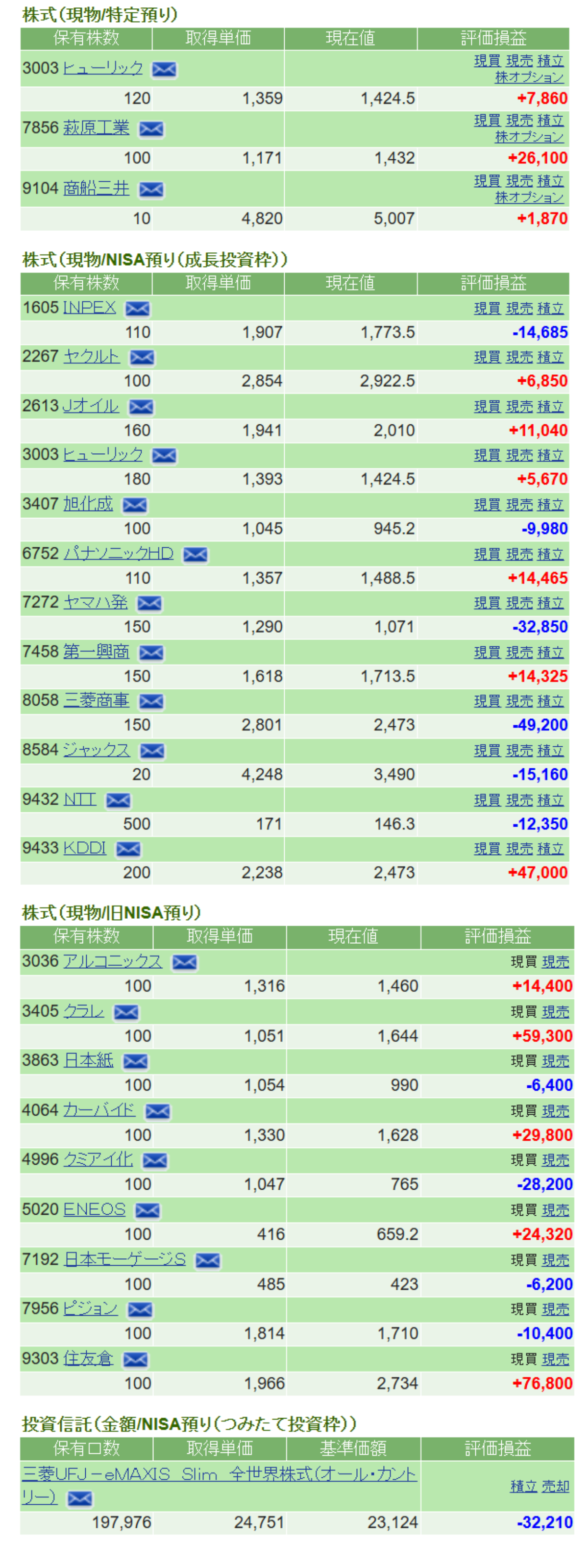 オルカンは含み損になってしまっていますが、日本株は含み益で耐えてくれているのと、配当金などを考えると余裕でプラスなのでよかったです。