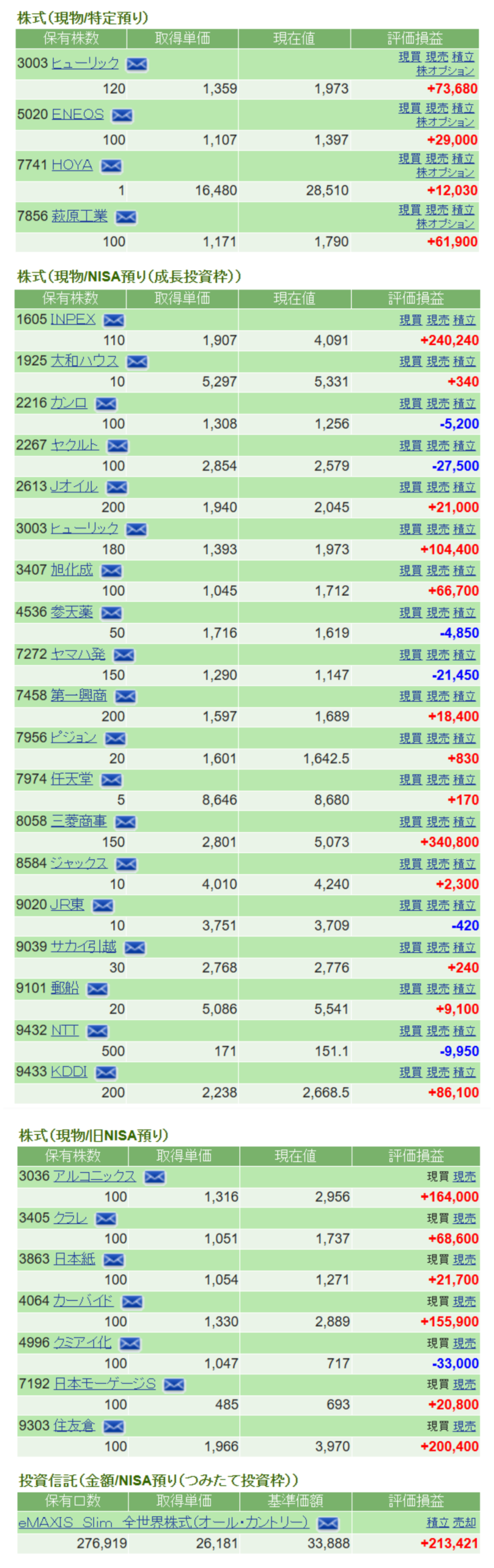 その間の売買については「取引」の記事を見ていただくとしまして、現在のポートフォリオはこんな感じです↓