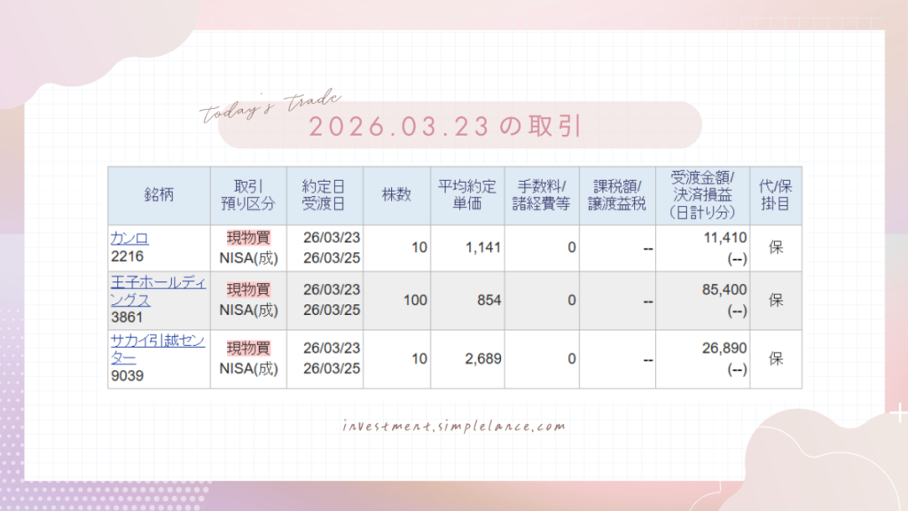 カンロ10株、サカイ引越センター10株、王子ホールディングス100株。